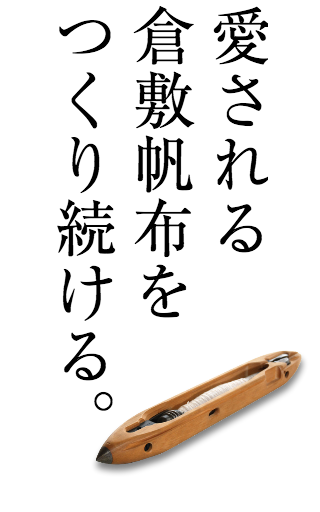 倉敷帆布は両端の耳の美しさが特徴。そこでさらにきれいにと考えたら、幅の狭い織り機そのものを自分で設計、溶接までして作ってしまいました。シャトル(杼)も特注です。帆布をつくる仕事のはずが、新しい機械までつくるなんて自分でも驚きです。当社で使っているシャトル織機はもう生産されていません。だから壊れたら自分で直します。やっぱり帆布を織る仕事が好きじゃないとできません。幅が狭いと織り上げる効率が悪い。でも効率よりも、誰にもできない良いものを作っていきたい。手間もかかりますが、誰にもできないものを作くる方が面白いじゃないですか。社員全員が倉敷帆布の伝統を守りながらも、新しいことに挑戦し意見を交わし、工夫を凝らすことはとても楽しい。そして、すべてにこだわりと愛着をもって作り上げているもの。それが我々が追い求める倉敷帆布です。