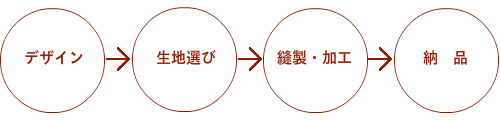 当社は安定した生産管理体制を築いており、高品質な一級帆布を提供します。納期・グレード・アイテムに応じ協力工場・2次加工場などのネットワークがあり、確立された管理体制のもとで製造しています。