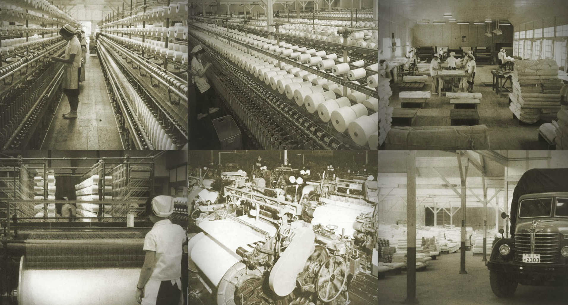児島の郷内地区の工場は、ほとんどが厚地の織物だけを専門に手掛けており、「武鑓織布株式会社」の創立者 武鑓石五郎と梅の三男進衛により織布の「丸進工業株式会社」が創業した。 |